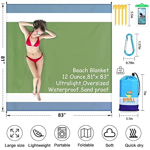 Details: The light and breathable beach blanket mat like a Room for the Entire Family!Will Give your family an unforgettable and enjoyable beach trip! Product size information:Material: Parachute fabric,Rip-stop 210T polyester.Expanded dimensions:78''×81''. (7''x5.1''x1.5'' After Folding)Weight:12 OunceNumber of people at the same time:4-7 Adults.Package:Includes 1 beach blanket, 4 ground stakes,1 carabiner and a storage bag. More features:1,Beach Blanket Waterproof Sandproof,Very suitable for physical contact,Including:Adults,Children,Baby,Dog.2,It can also be used as a canopy when it rains,sunshade,Emergency mat,toddler crawl,Won't irritate your skin.3,Waterproof sandproof,machine wahable,Dry quickly and won't fade after washing.Can be used many times.There are many colors to choose from.4,4 Anchoring Loops On Each Corner,Firmly fixed on the beach,Prevent being blown by the wind.5,It can block moisture grass and soil on the ground,Perfect to let a toddler crawl around.6,It's shading effect is excellent when the sun is too strong,You can also hang it up with a rope to get some shade.7,Portable and Easy to store,Very light and small after folding,12 oz easy to carry.Small and Mighty!8,Durable in most all environments,More ways to use it are waiting for you to explore. Take this beach to have a happy holiday and enjoy the sunshine and sea of the whole family.