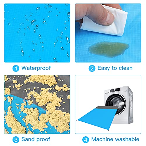 - 🏖️Beach Blanket Waterproof Sandproof:78''×81'' Size beach blanket comfortable fit 4-7 adults,Odorless,Made by parachute fabric,Rip-stop 210T polyester,Very light and small after folding,12 oz easy to carry,Small and Mighty!