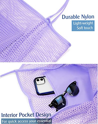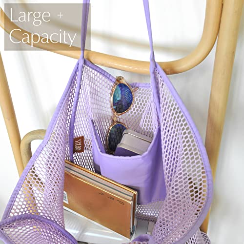 HOXIS Mesh Beach Tote Womens Shoulder Handbag (Lavender)