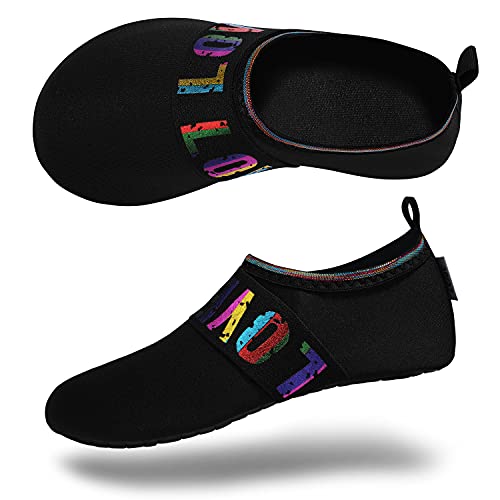 Made with soft material, 92% polyester+8% spandex Upper, these water socks have breathable ultra light fabrics with fine stretch on uppers. A smooth-designed neck prevents chafing and slipping off when wearing these funny water shoes.